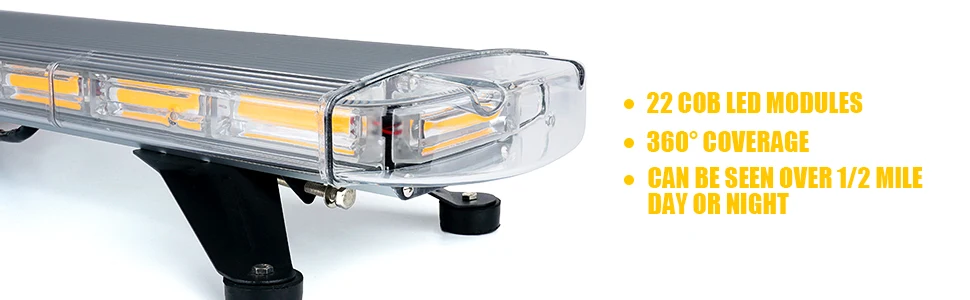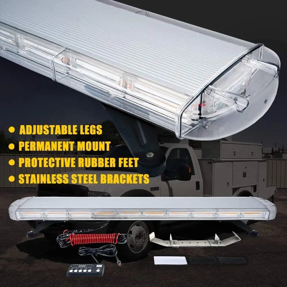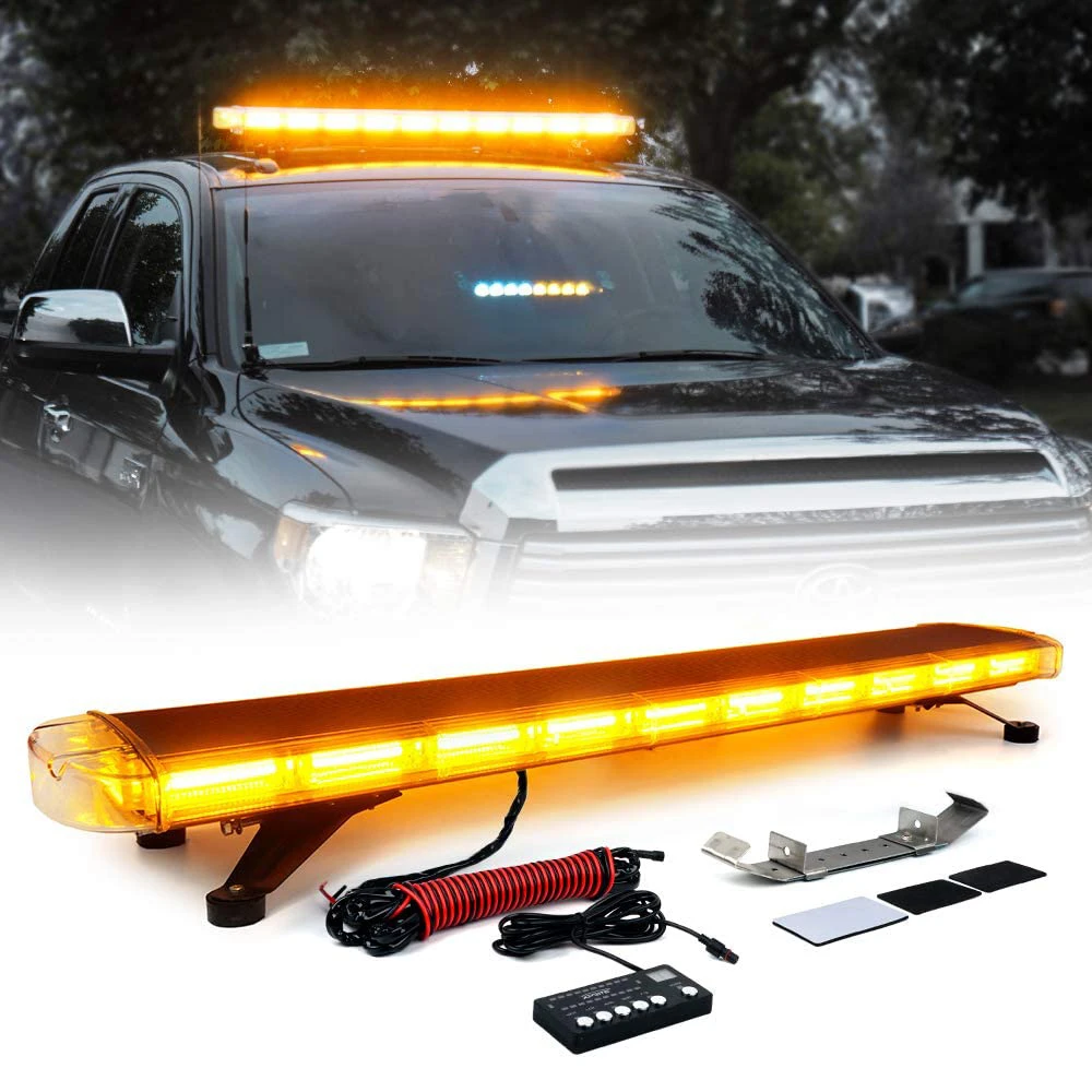 47 Inch COB LED Amber Rooftop Emergency Strobe Lights Bar W/Adjustable Mounting Brackets Hazard Warning Flashing Lighting