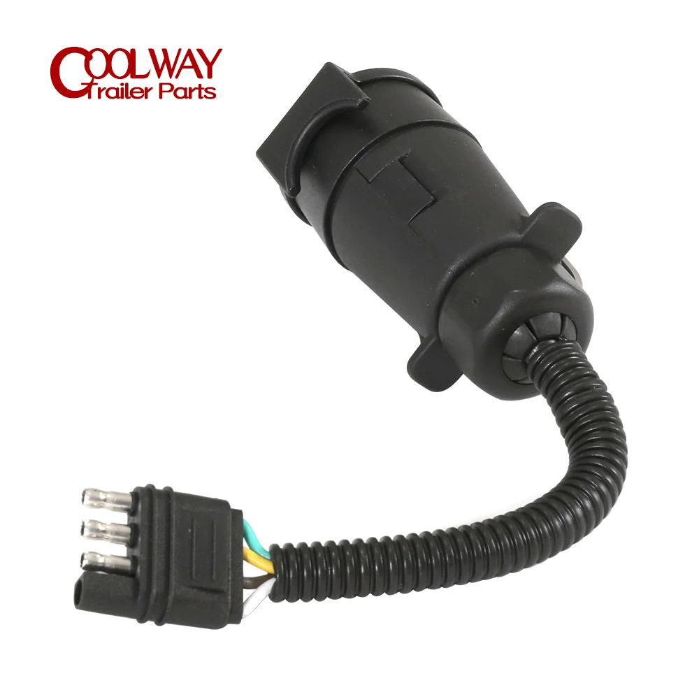 Trailer Tow Wiring Harness 4 Pin Flat Plug To 7 Way European Style Round Trailer Socket Adapter RV Connector Camper Accessories